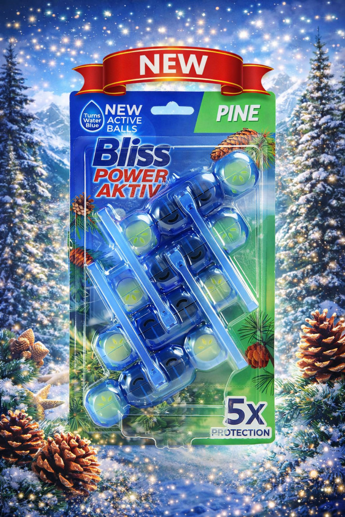 BLISS WC-illatosító-tisztító golyók vízfestős fenyő illat 4x55g / pine